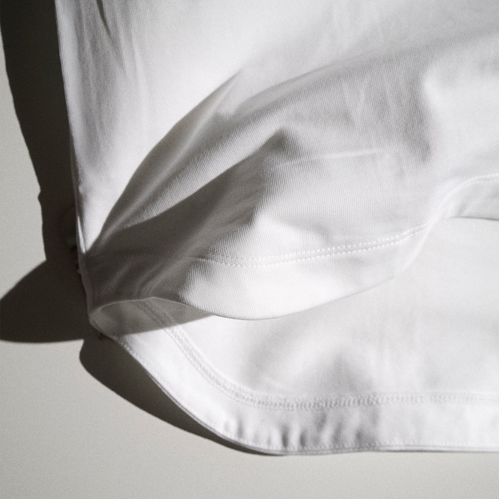 微強撚糸を極限までハイゲージで編みこみ、コットンのハリとコシにこだわった、さらっとした肌触りが心地よい一枚です。